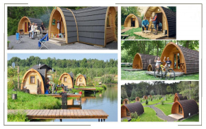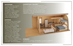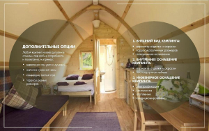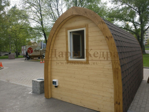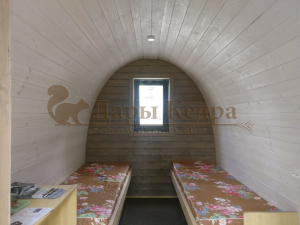 Такой кемпинг дом удобное и практичное решение для дачного использования или обустройства загородных баз отдыха. Изготовлен из хвойных пород древесины. Кровля из мягкой черепицы и цельный навес по всему фасаду изделия обеспечивают защиту от осадков. Домик включает в себя одну комнату с двумя кроватями, для удобства пользования оборудован навесным столиком, полкой и вешалкой. Входная дверь изготовлена из двойного стеклопакета.